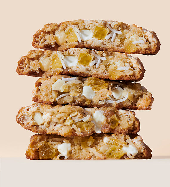 Freshly grated ginger, candied pineapple, flaked coconut and toasted macadamia nuts give this cookie an ethereal halo of incredible flavor.
